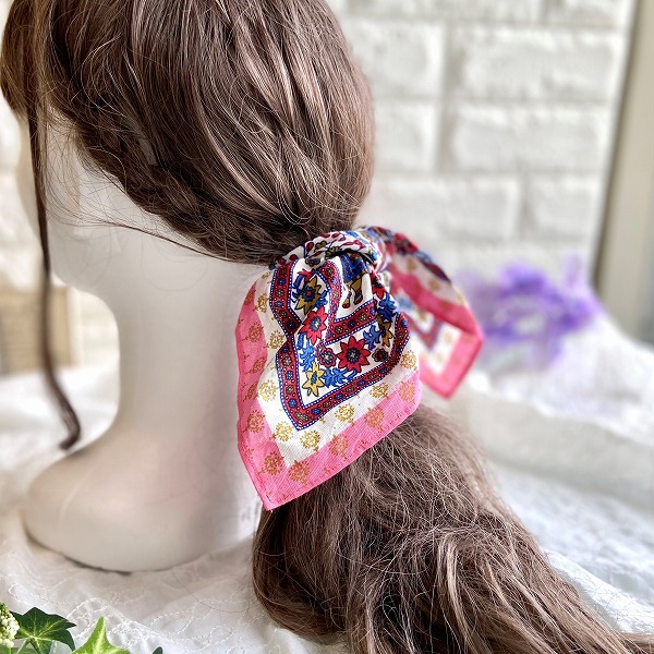 結んだときにおしゃれな花柄インド綿バンダナ☆