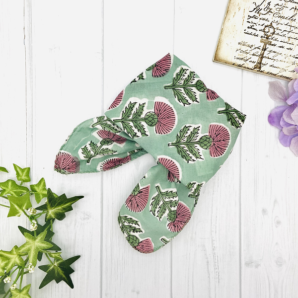 バンダナ インド綿100% アザミ 総柄 グリーン ピンク 約50cm×50cm