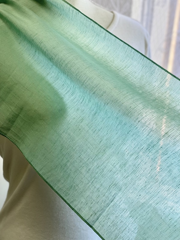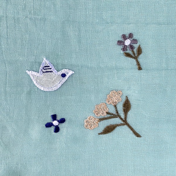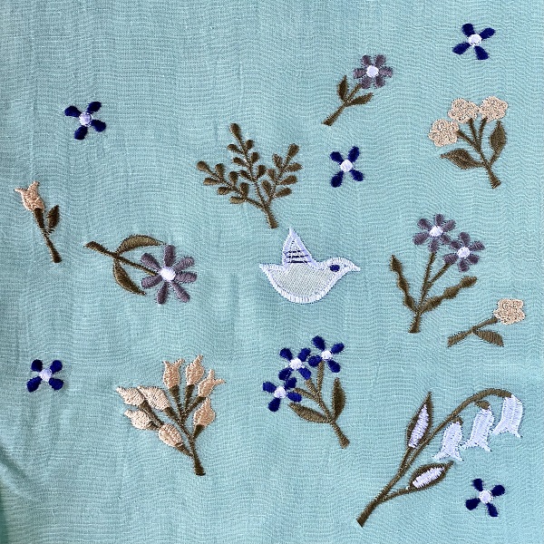 ストール 綿50% 麻50% 白い小鳥とフラワー ターコイズ 160cm×30cm