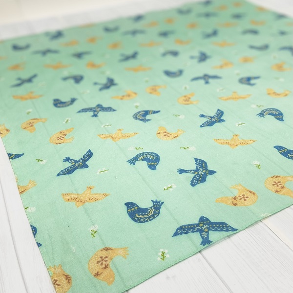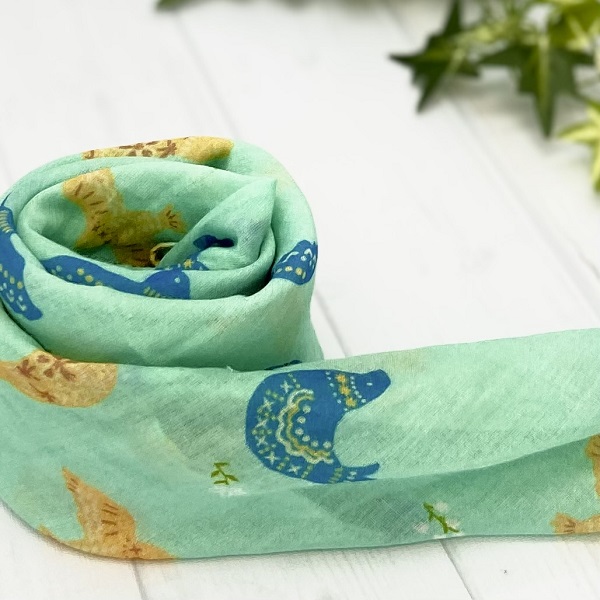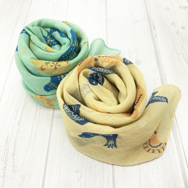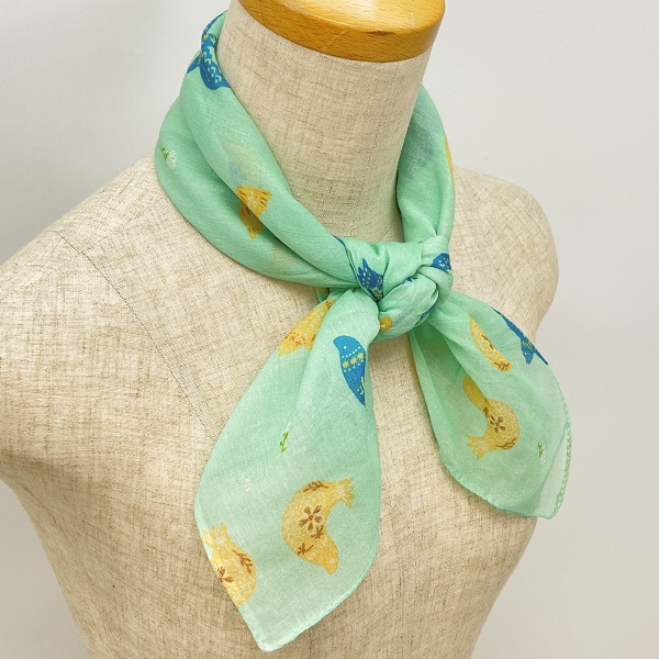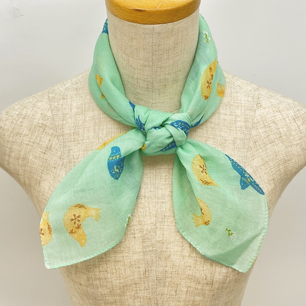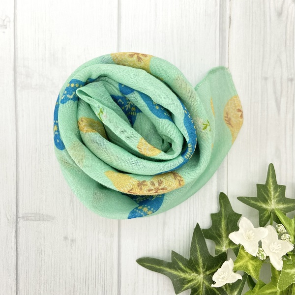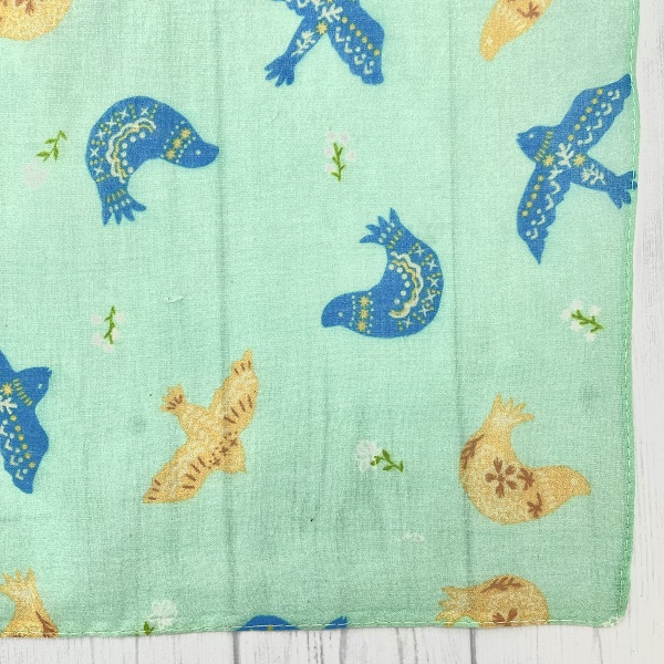 スカーフ 綿100% バードブリント ミント 70cm×70cm