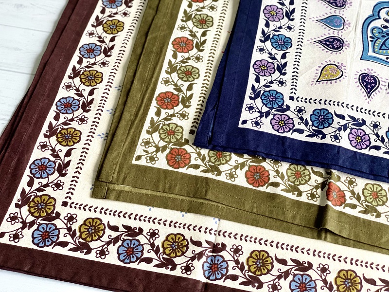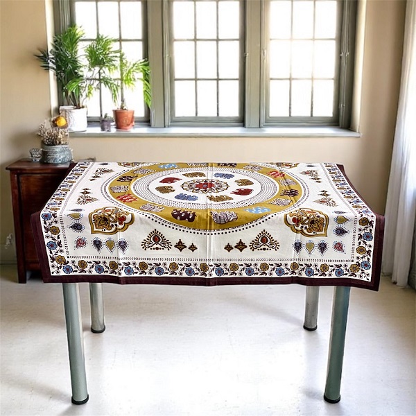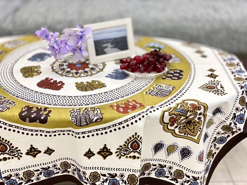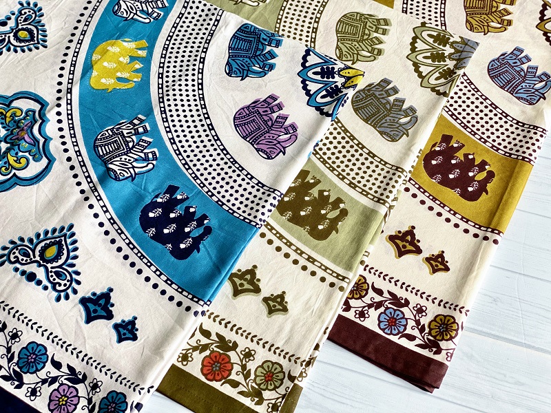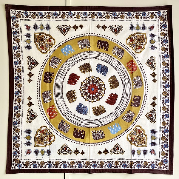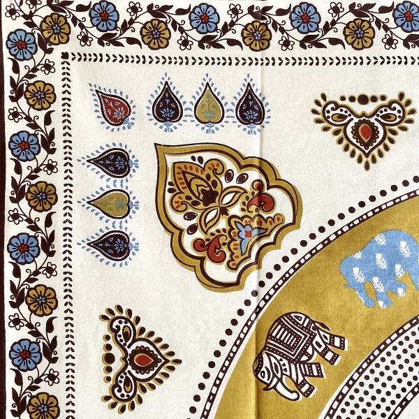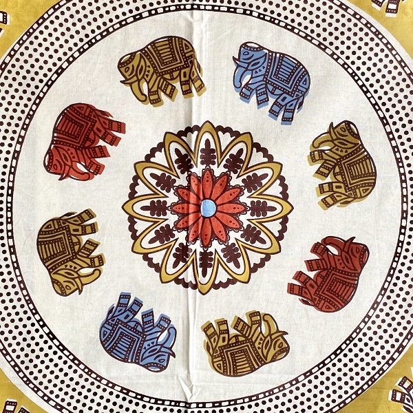 テーブルクロス インド綿100% 像 花柄 イエロー 105cm×105cm
