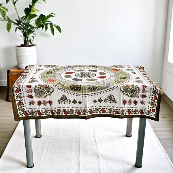 インドの伝統美が息づく、華やかなテーブルクロス。