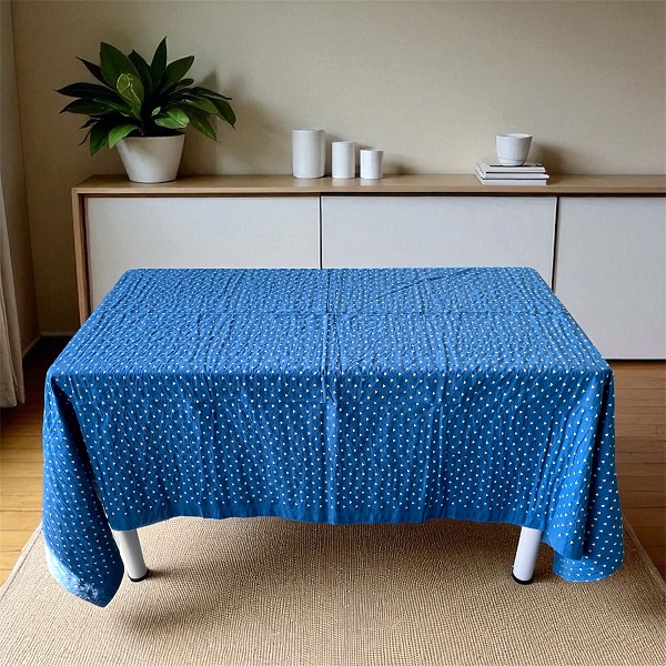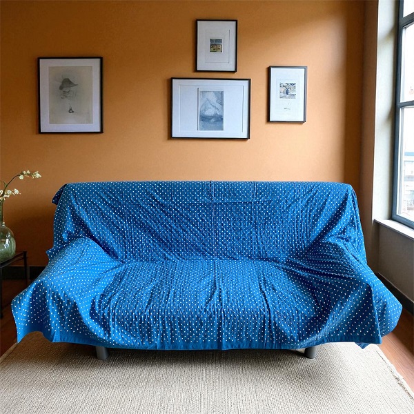 フリークロス トレイル ステッチネイビー インド綿100% ベッドカバー ソファーカバー シングル マルチクロス カーテン 間切り 水色ドット km031
