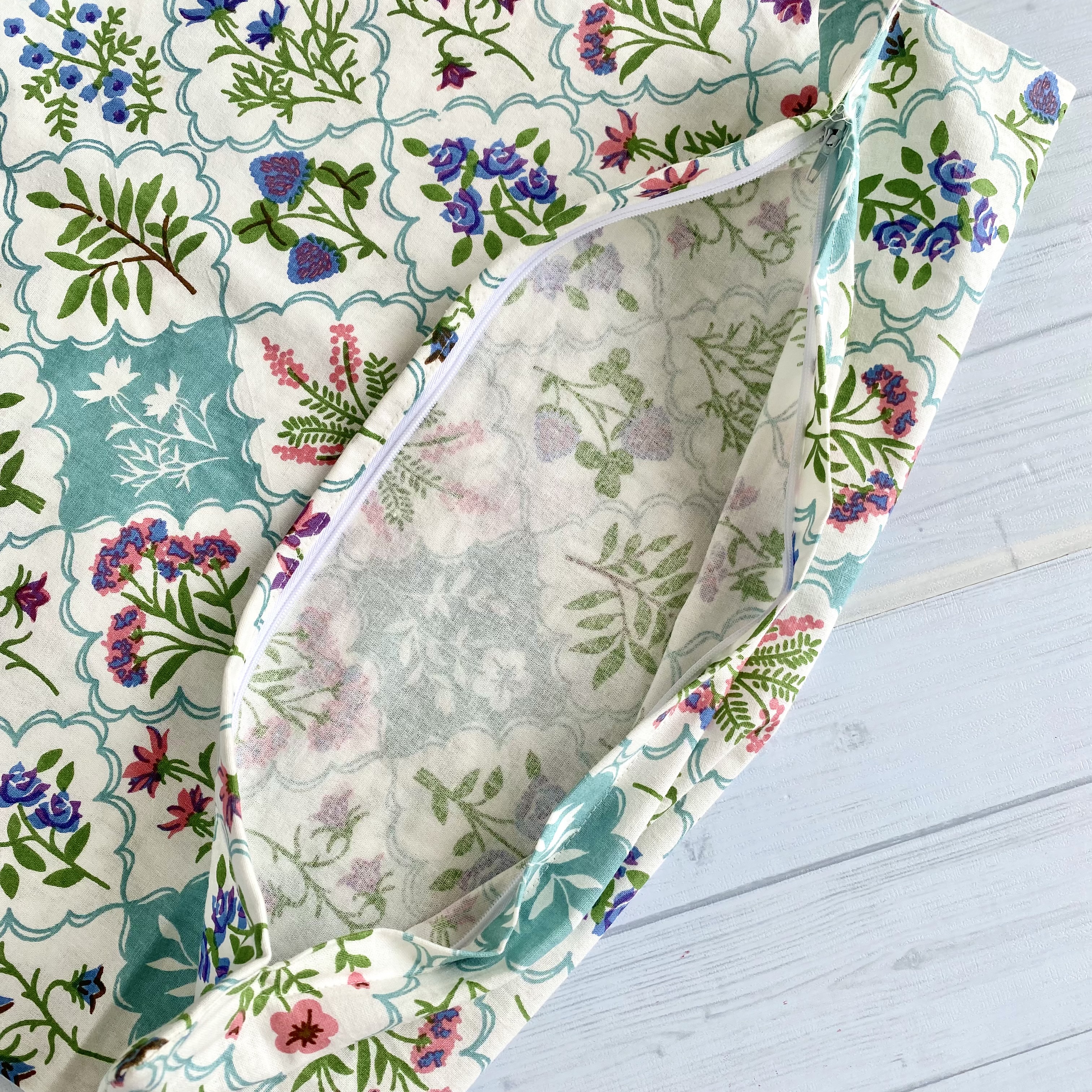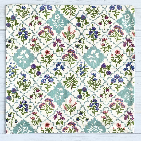 【*クスス雑貨 クッション カバー アンティークレース ボタニカルフラワーブロックプリント インド綿 エレガント ヨーロッパ 北欧 華やか コットン100% ブルー 青 kh017】