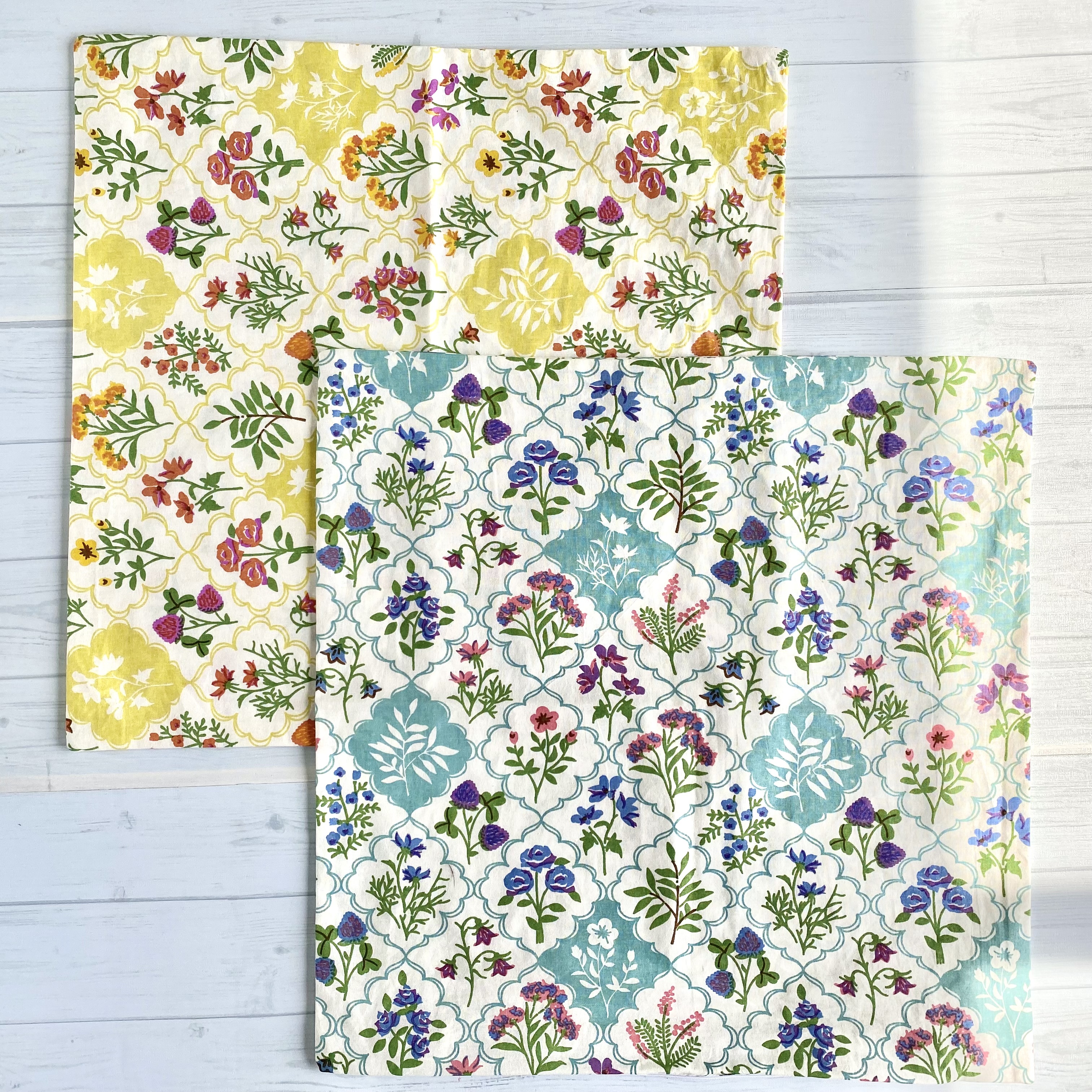 クッション カバー コットン100% ボタニカルフラワー ブルー 45cm×45cm