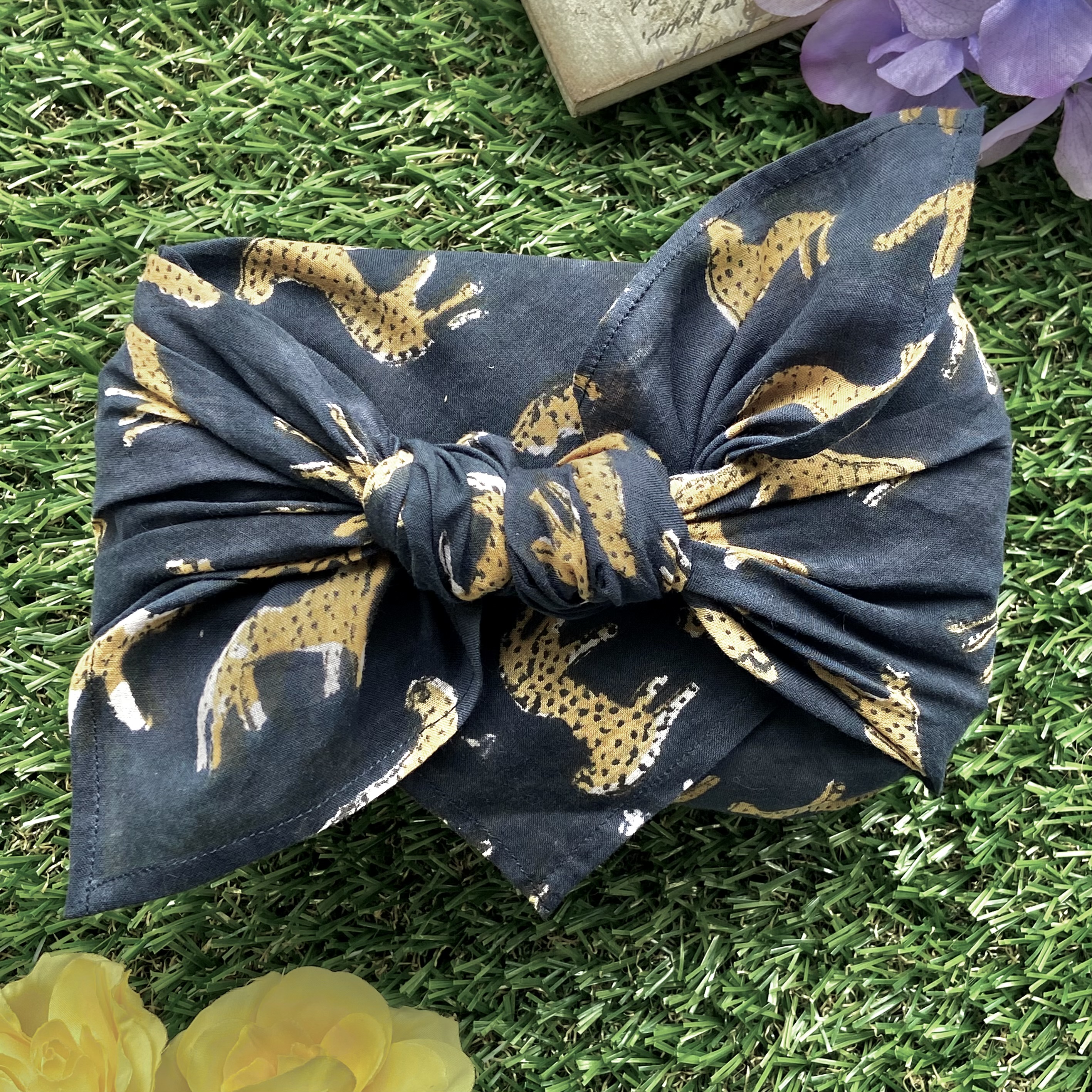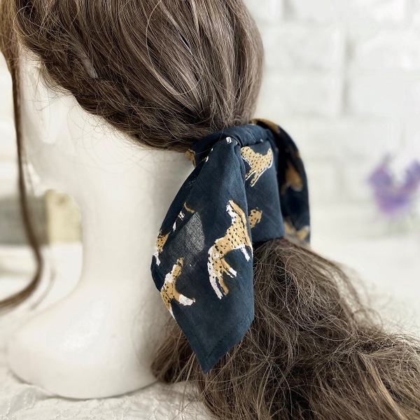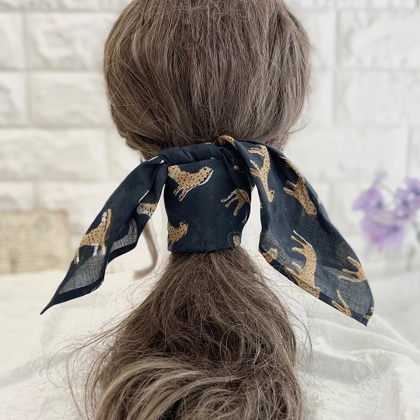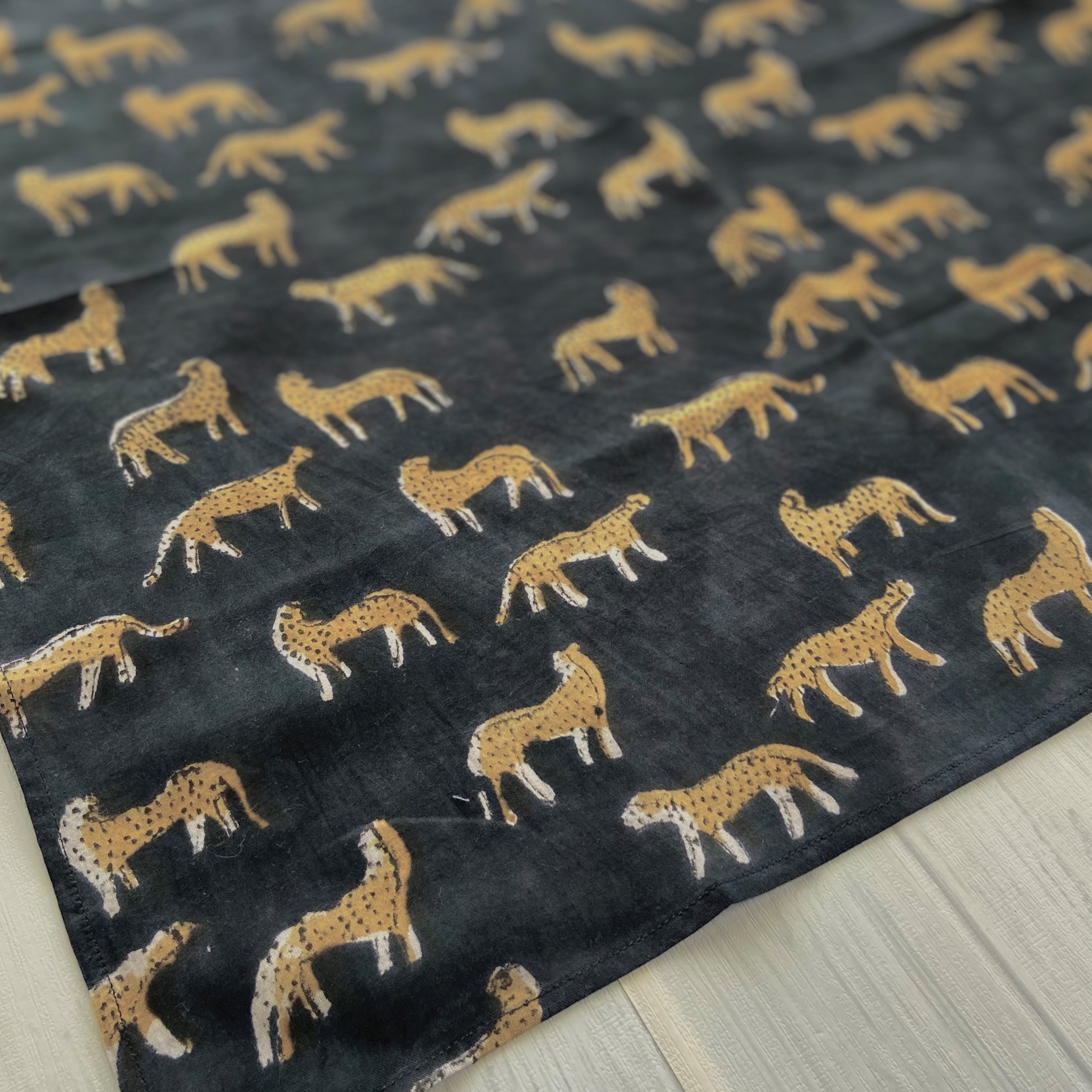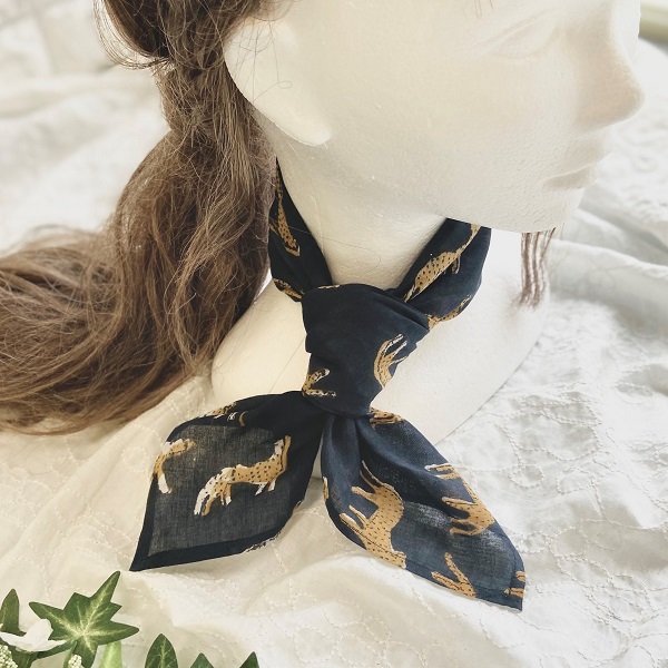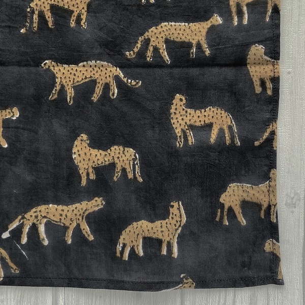 バンダナインド綿100% レオパード 豹 ひょう アニマル ブラック 52cm×52cm kb030