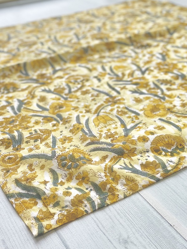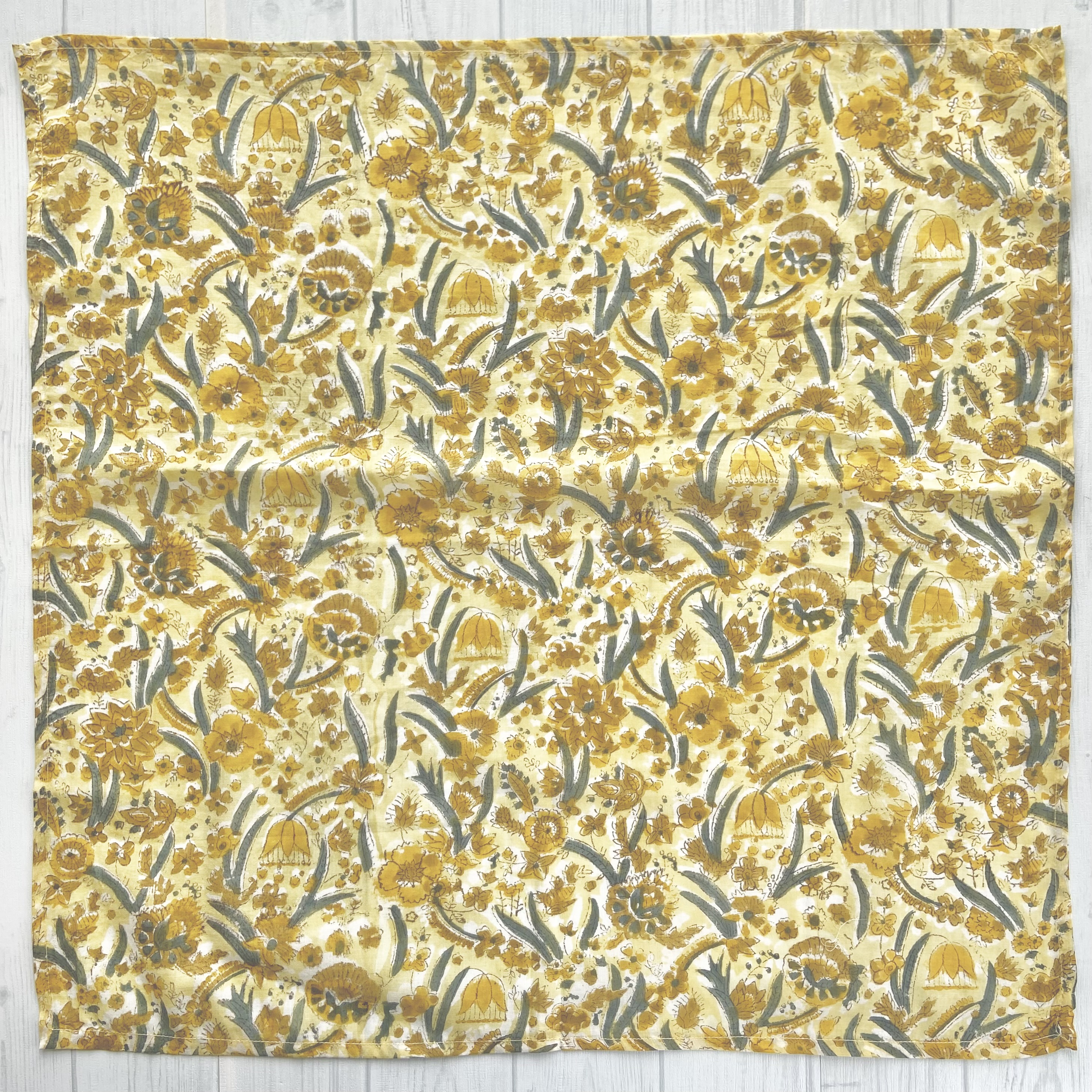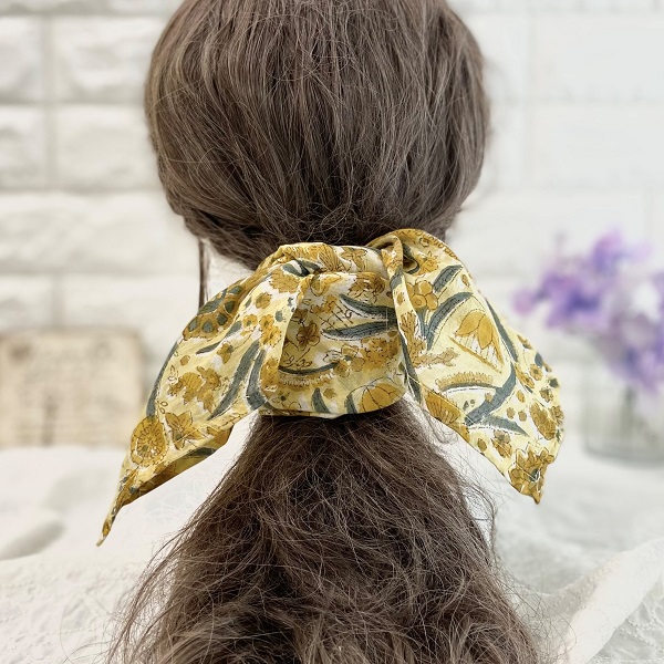 バンダナ インド綿100% イエロー花 52cm×52cm kb035