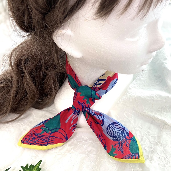 バンダナ インド綿100% ジュエリーフィッシュ クラゲ レッド 52cm×52cm kb037