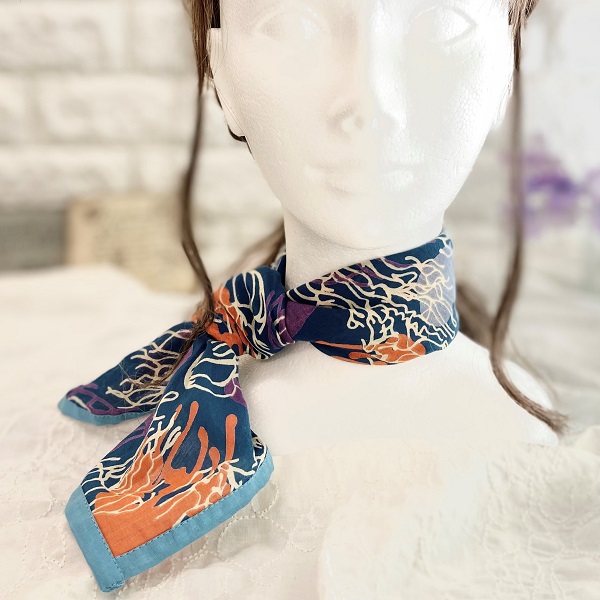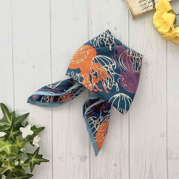 バンダナ インド綿100% ジュエリーフィッシュ クラゲ ネイビー 52cm×52cm kb038