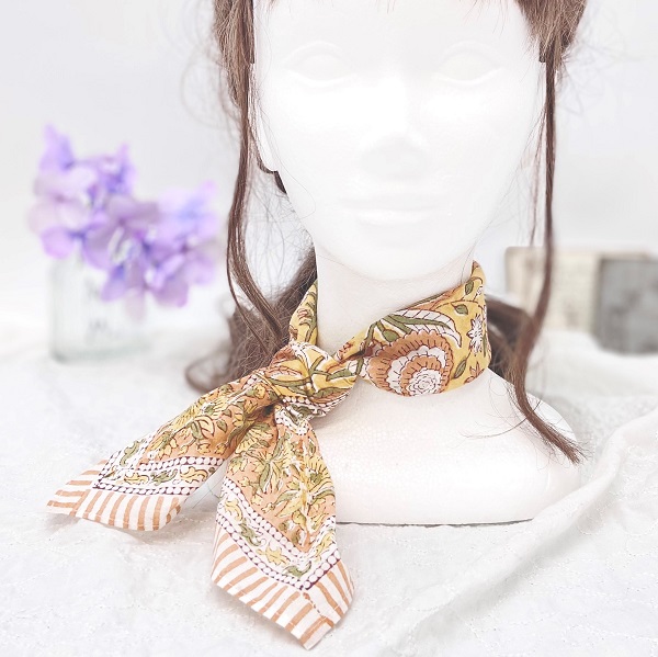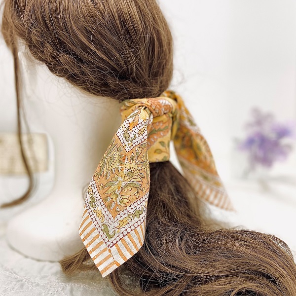インドの伝統的な木板プリントで丁寧に仕上げられた、エスニック風合いが魅力なバンダナです☆