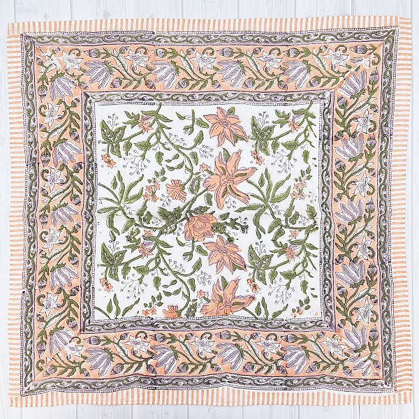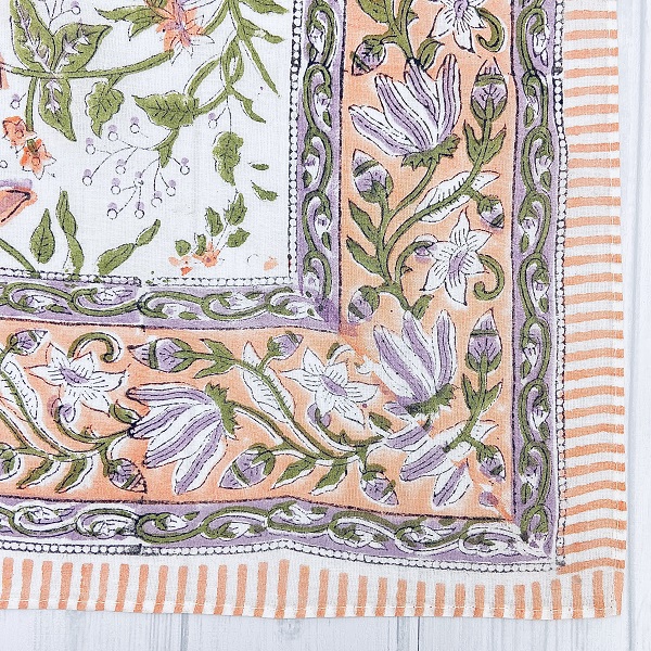 【バンダナ 大判 カリーノ ブロックプリント インド綿100% ライラックピンク アジアン エスニック 北欧 お弁当 包み スカーフ スタイ レディース 約52cm×52cm】