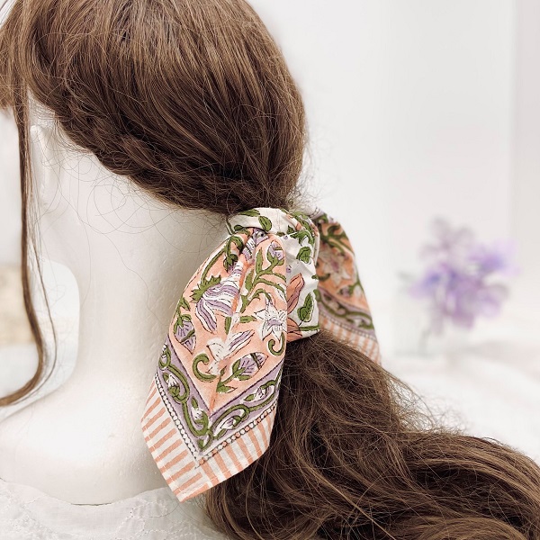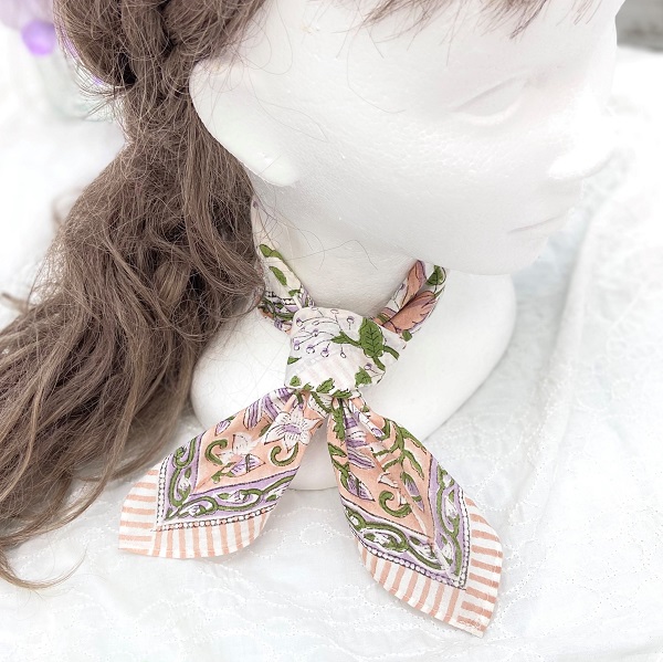 インドの伝統的な木板プリントで丁寧に仕上げられた、エスニック風合いが魅力なバンダナです☆