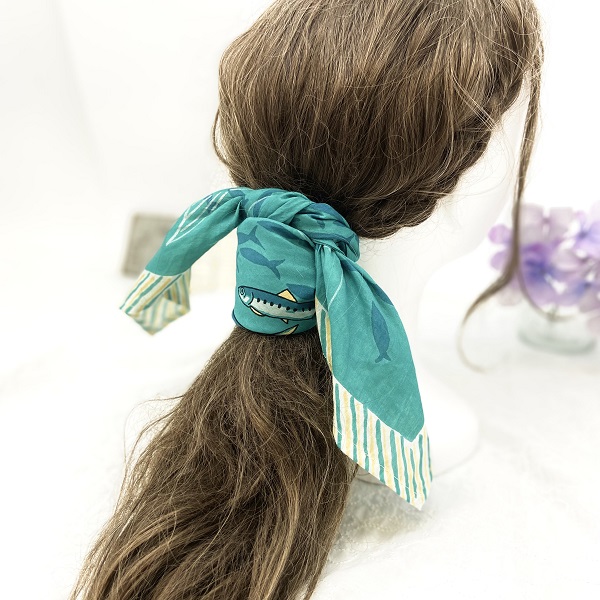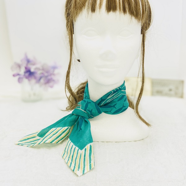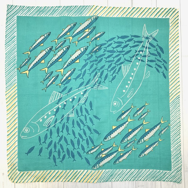 バンダナ インド綿100% いわし グリーン 約53cm×53cm