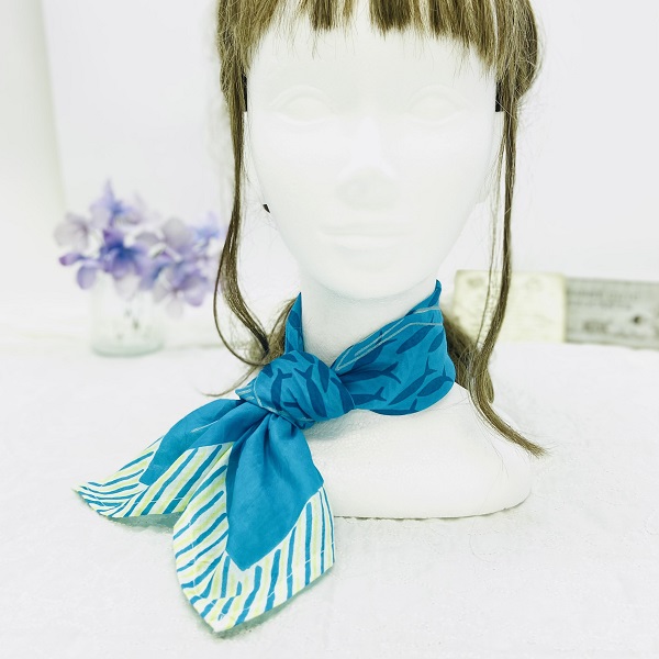 バンダナ インド綿100% いわし ブルー 約53cm×53cm