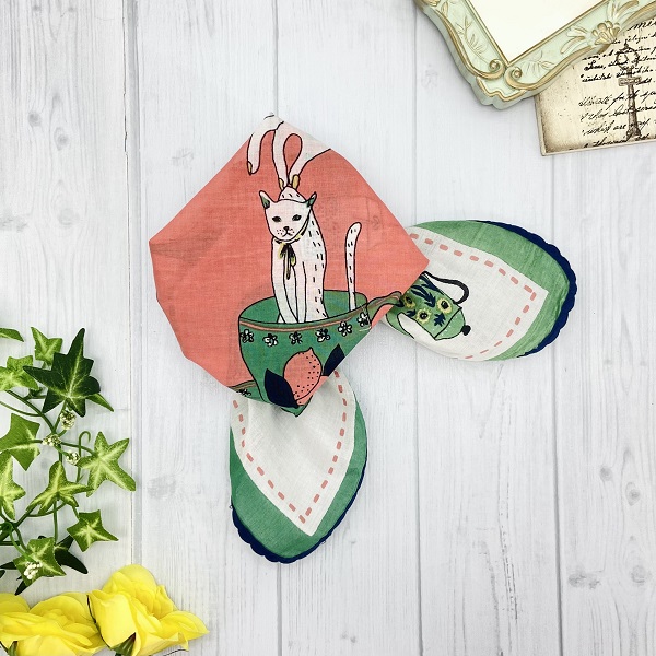 バンダナ インド綿100% アフタヌーンティー つままれニャンコ ピンク 約53cm×53cm