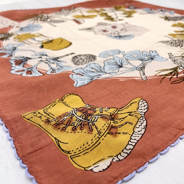 【*バンダナ インド綿100% ブロックプリントアウトドア 猫 アニマル カントリー 北欧 可愛い ピンク 約53cm×53cm kb068】