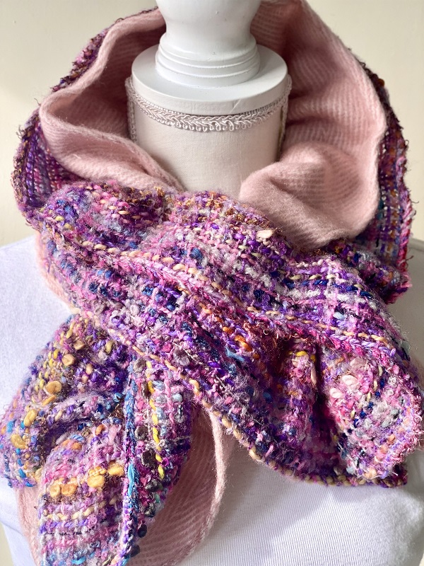 ティペット ネックウォーマー 先染め チェック ピンク16cm×115cm ks034