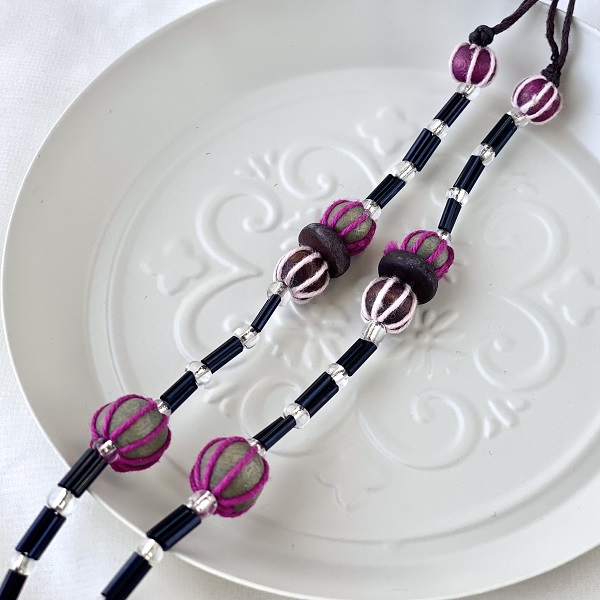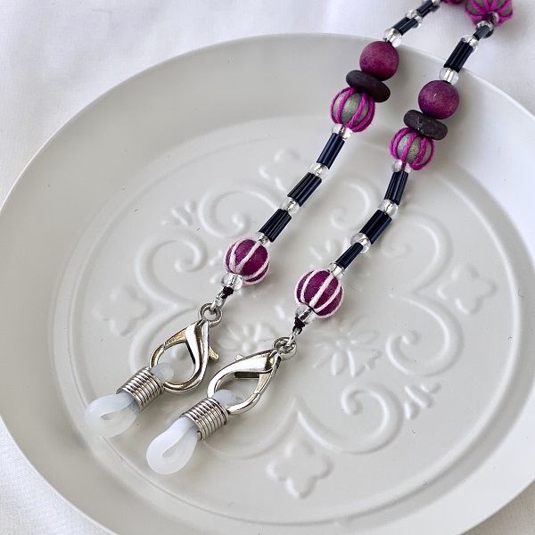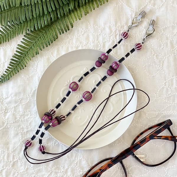 メガネチェーン ビーズ ウッドボール パープル赤紫 約70cm kh019