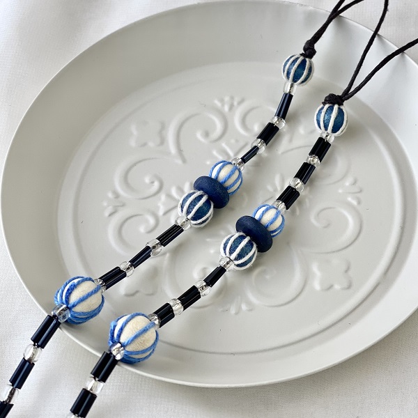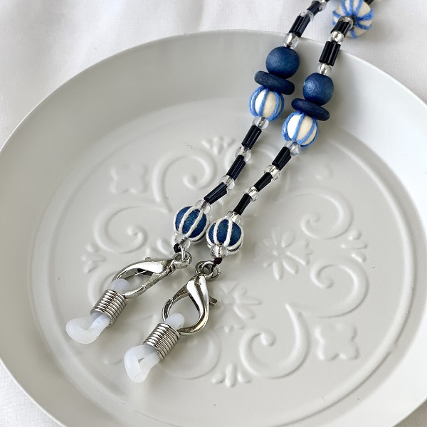 メガネチェーン ビーズ ウッドボール ブルー 水色 約70cm kh020