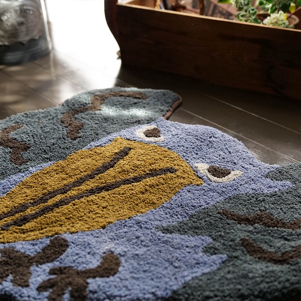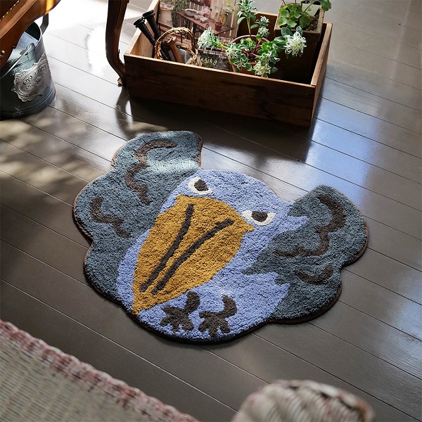 【クスス雑貨 マット バンザイ 癒し系ハシビロコ 玄関 お風呂場 リビング インド産 アニマル カントリー 北欧 POP 約61cm×H46cm kmt006】