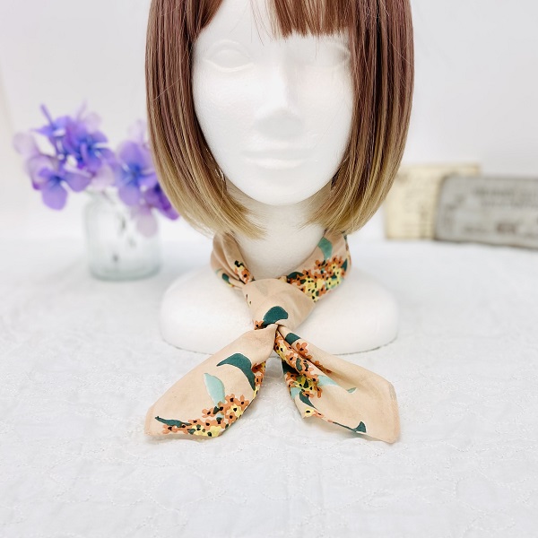 可憐なオレンジ色の小さな花をいっぱい咲かせ、あたり一面を幸福感で満たす金木犀柄のハンカチ。