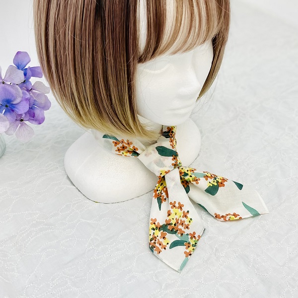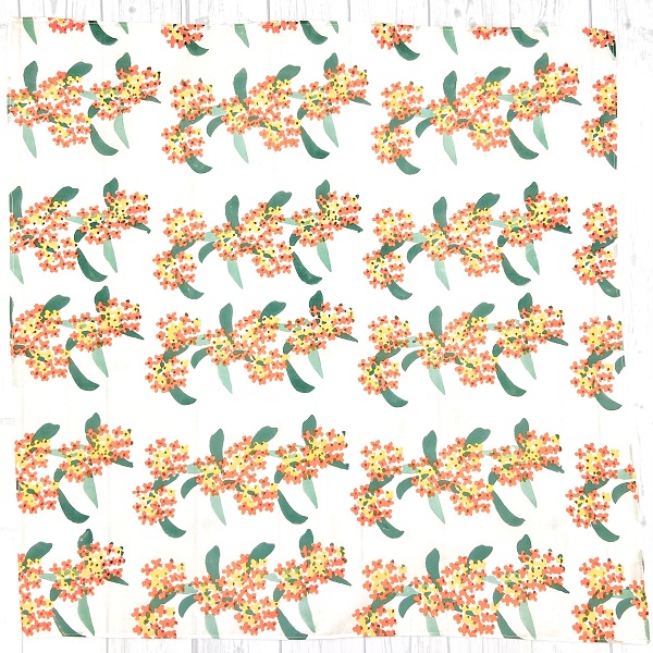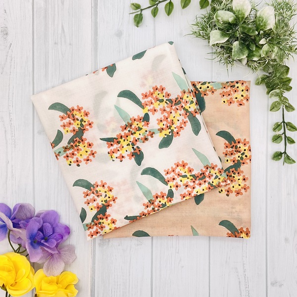 可憐なオレンジ色の小さな花をいっぱい咲かせ、あたり一面を幸福感で満たす金木犀柄のハンカチ。