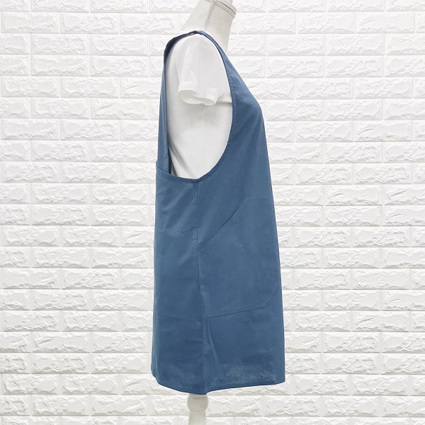 エプロン インド綿100% シンプル ブルー 定番人気 北欧 カントリー 使いやすい フリーサイズ ke009