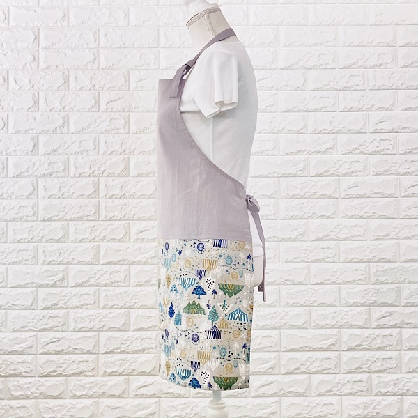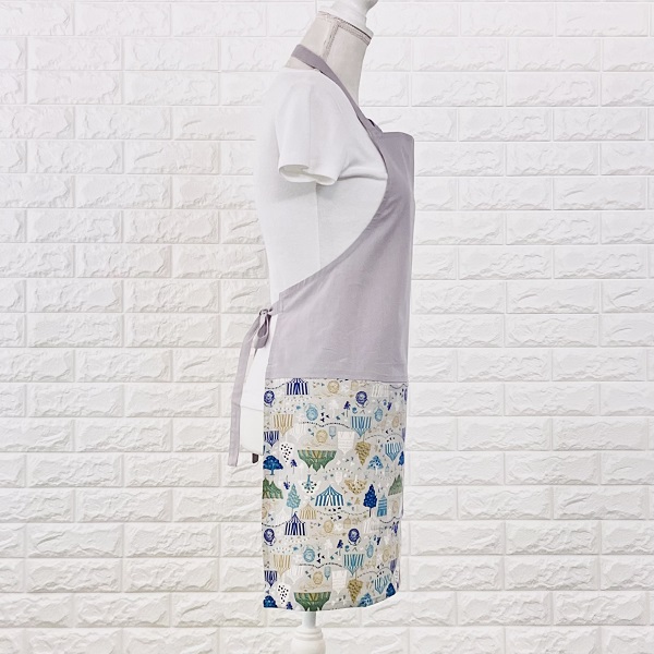 エプロン インド綿100% シンプル グレー アウトドア柄 北欧 カントリー 使いやすい フリーサイズ ke010