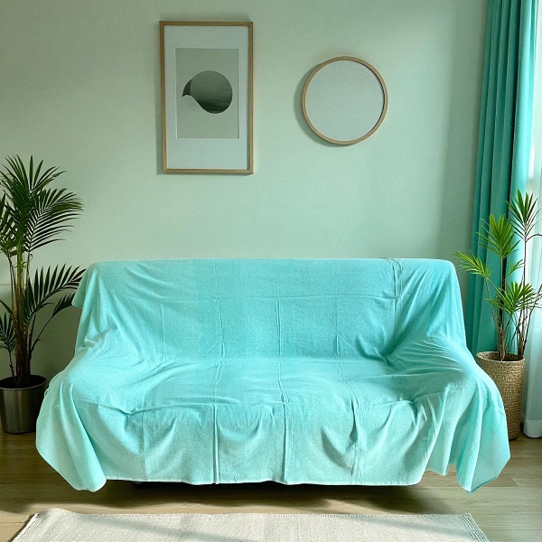 【*マルチカバー インド綿100% シンプルカラー ベッドカバー ソファーカバー シングル マルチクロス カーテン 間切り 北欧 カントリー シンプル ナチュラル ブルー 145cm×225cm km028】