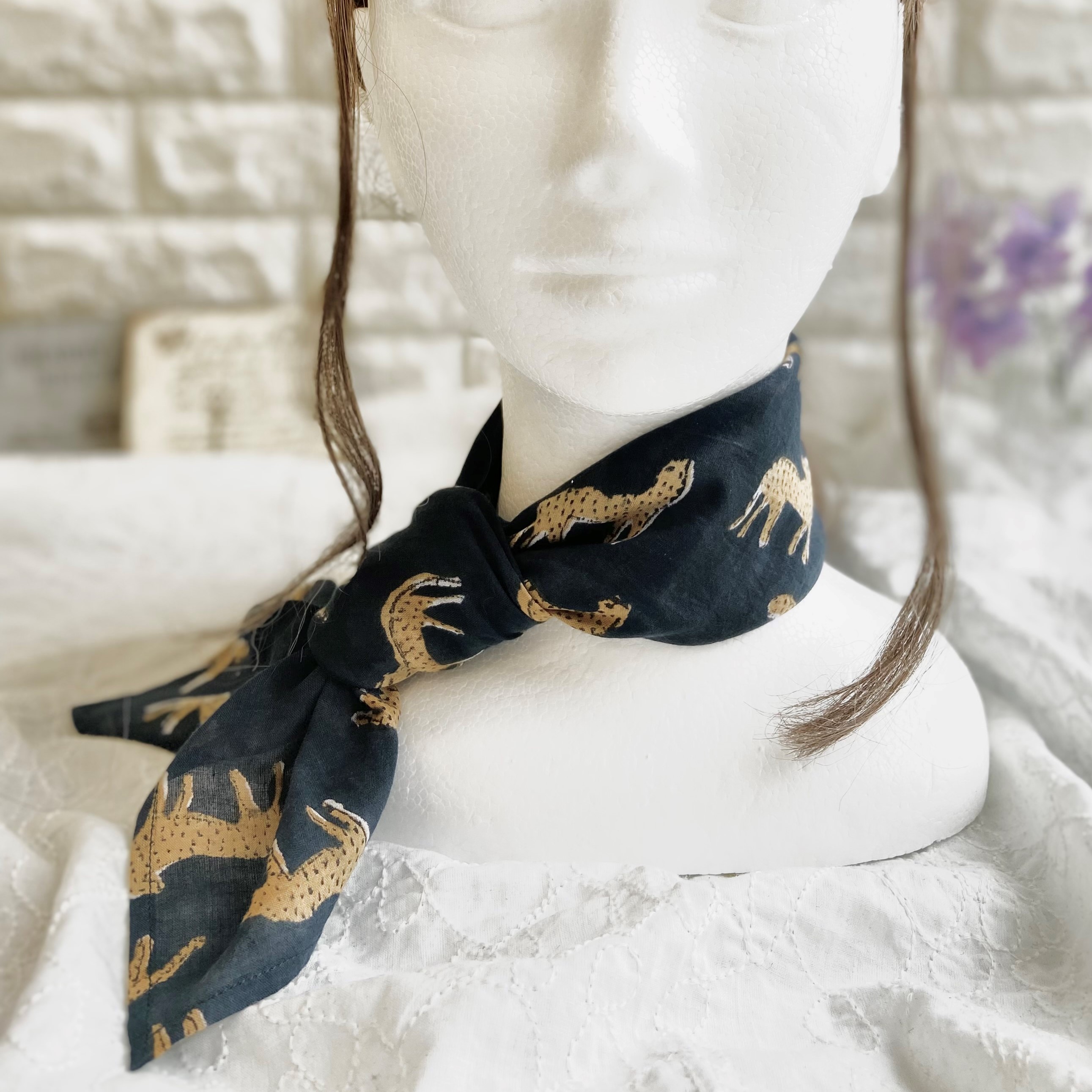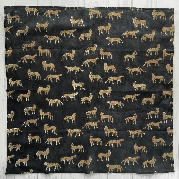 バンダナインド綿100% レオパード 豹 ひょう アニマル ブラック 52cm×52cm kb030