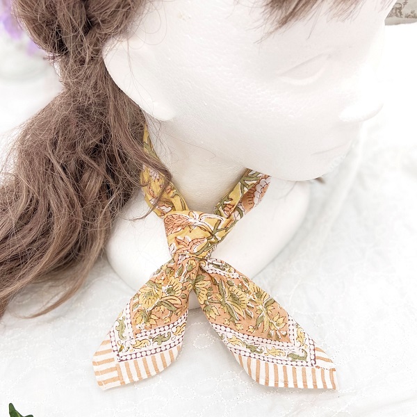 インドの伝統的な木板プリントで丁寧に仕上げられた、エスニック風合いが魅力なバンダナです☆