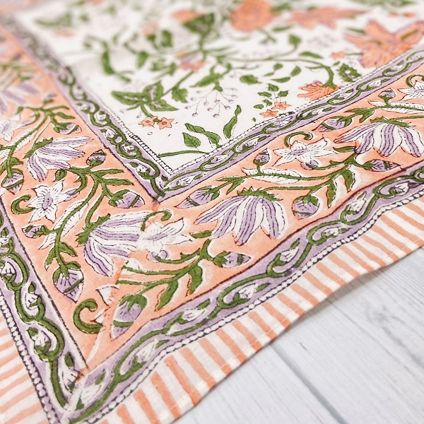 【バンダナ 大判 カリーノ ブロックプリント インド綿100% ライラックピンク アジアン エスニック 北欧 お弁当 包み スカーフ スタイ レディース 約52cm×52cm】