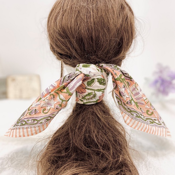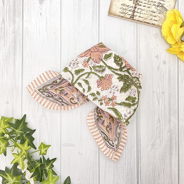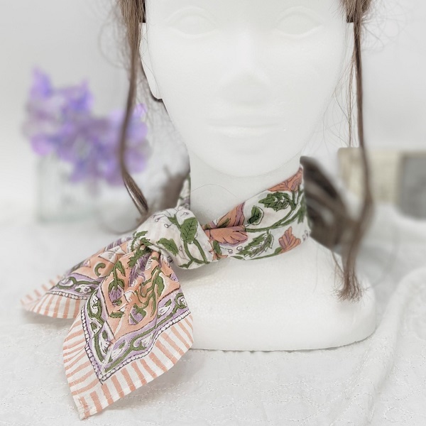インドの伝統的な木板プリントで丁寧に仕上げられた、エスニック風合いが魅力なバンダナです☆
