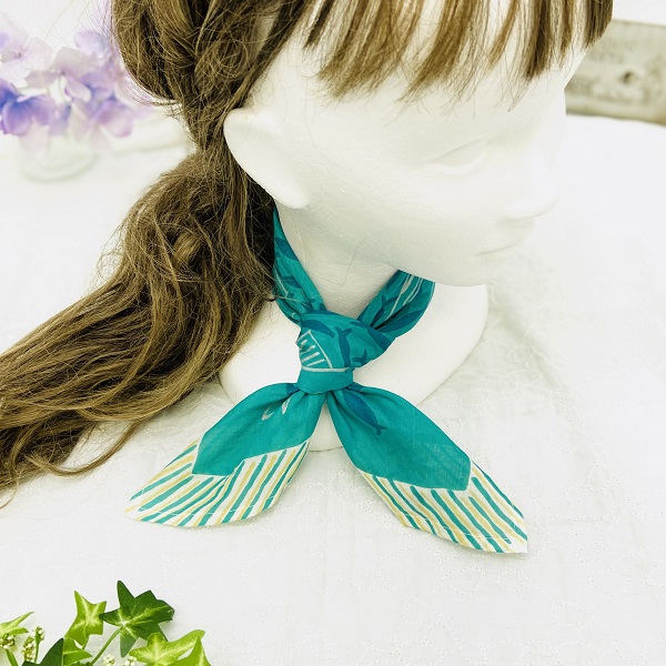 バンダナ インド綿100% いわし グリーン 約53cm×53cm