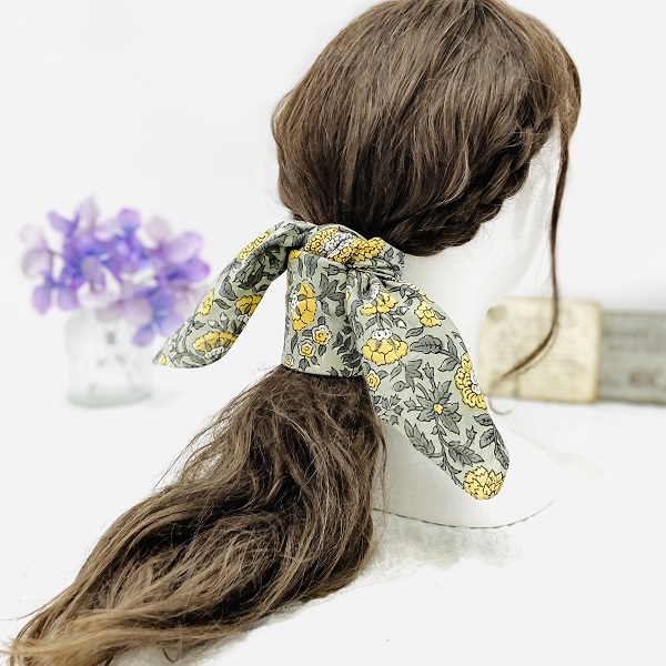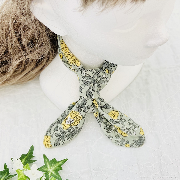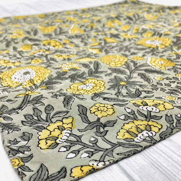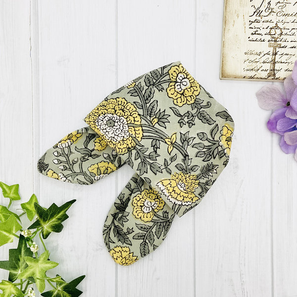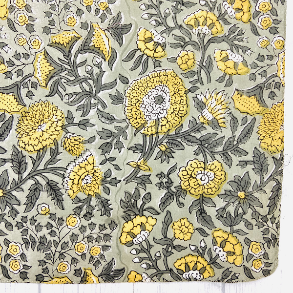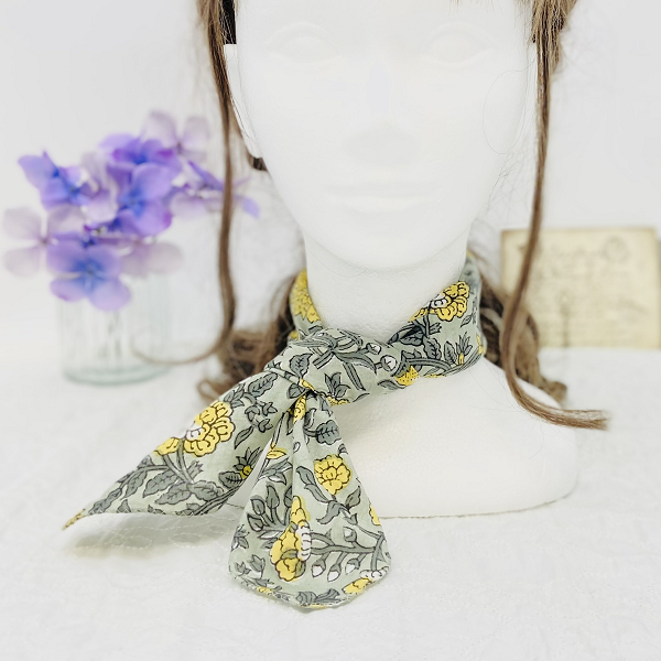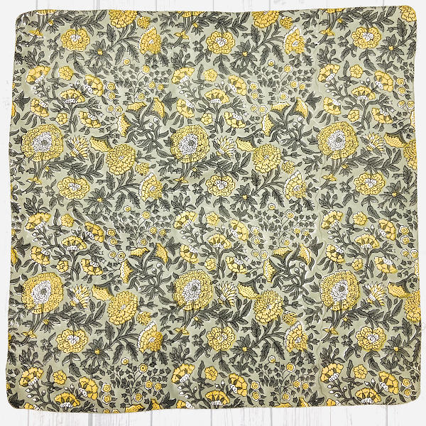 バンダナ インド綿100% ビッグフラワー グリーン イエロー 約50cm×50cm
