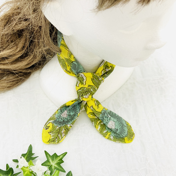 バンダナ インド綿100% ボタニカル柄 イエロー グリーン 約50cm×50cm
