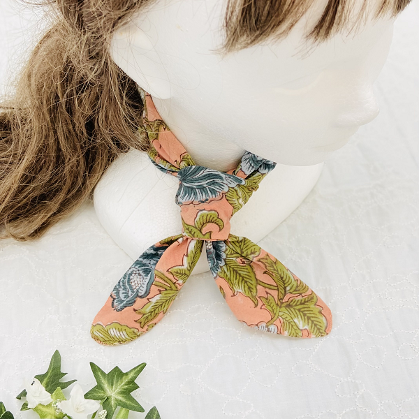 バンダナ インド綿100% ボタニカル柄 オレンジ ブルー 約50cm×50cm