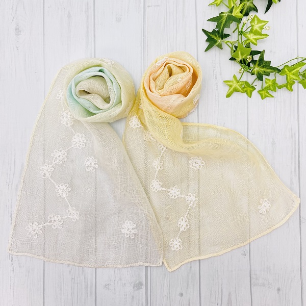 花がらの刺繍の入ったショールです♪幅は小さめのコンパクトサイズでシルエットもキレイです!