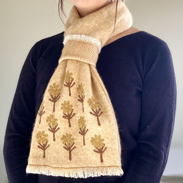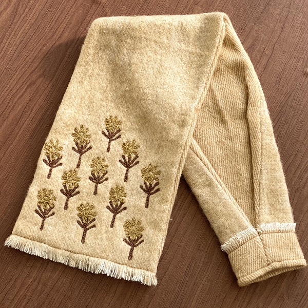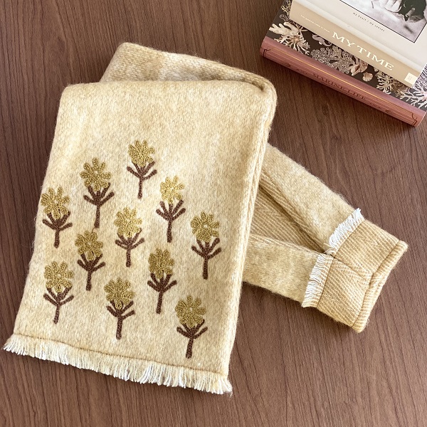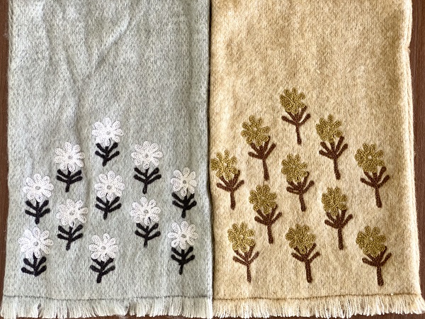 【クスス雑貨 マフラー ネックウォーマー アリ刺繍 フラワー ベージュ 着用しやすい 北欧 シンプル カントリー アクリル100% 22cm×90cm ks037】
