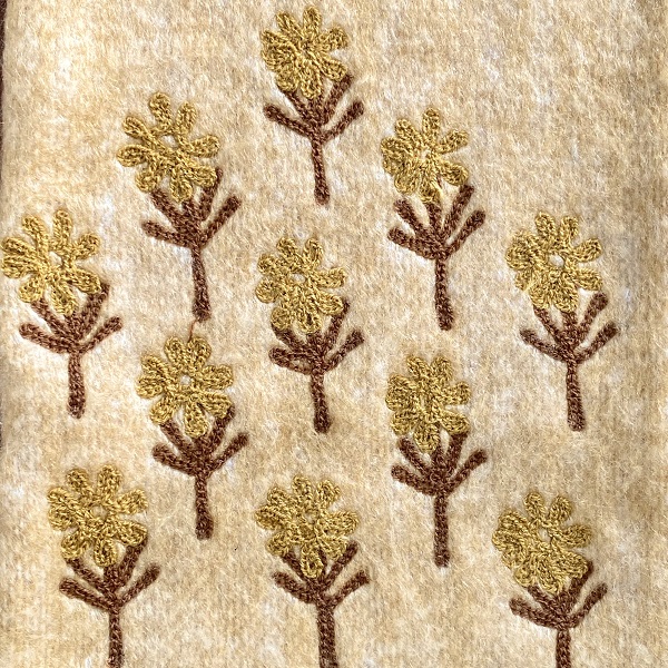 マフラー ネックウォーマー アリ刺繍 フラワー ベージュ アクリル100% 22cm×90cm ks037