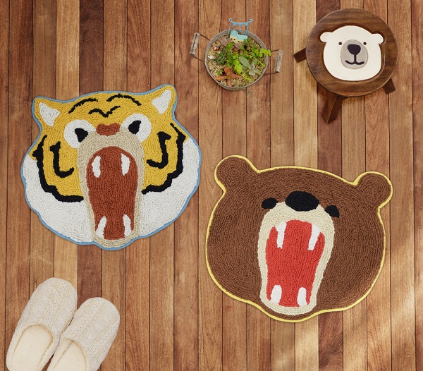 【マット がおー威嚇してるけど怖くない可愛いトラ 玄関 お風呂場 リビング インド産 アニマル カントリー 北欧 POP 約46cm×52cm kmt001】