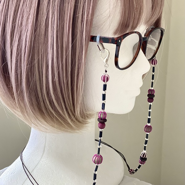 メガネチェーン ビーズ ウッドボール パープル赤紫 約70cm kh019