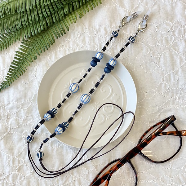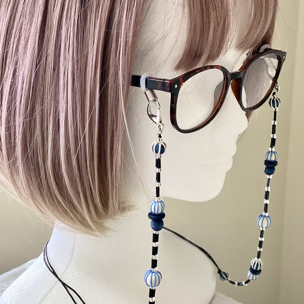 メガネチェーン ビーズ ウッドボール ブルー 水色 約70cm kh020