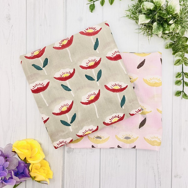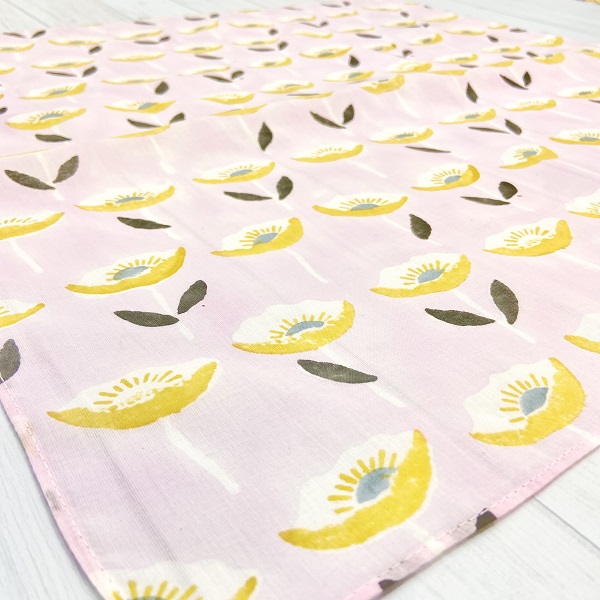 冬に色鮮やかに花開くアネモネをモチーフにしたブロックプリントハンカチ。ギリシャ語で「風」を意味するアネモスを由来に持ち、イギリスでは「wind flower」と呼ばれるこの花が、風に揺れながら咲く美しい姿をデザインに落とし込みました。「希望」や「期待」といった花言葉を持つアネモネは、贈り物としても最適。