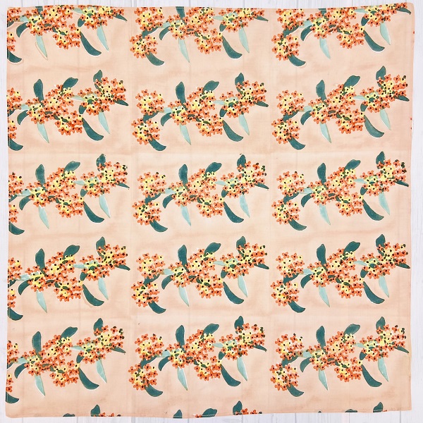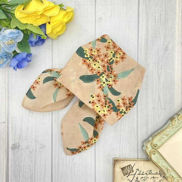 可憐なオレンジ色の小さな花をいっぱい咲かせ、あたり一面を幸福感で満たす金木犀柄のハンカチ。