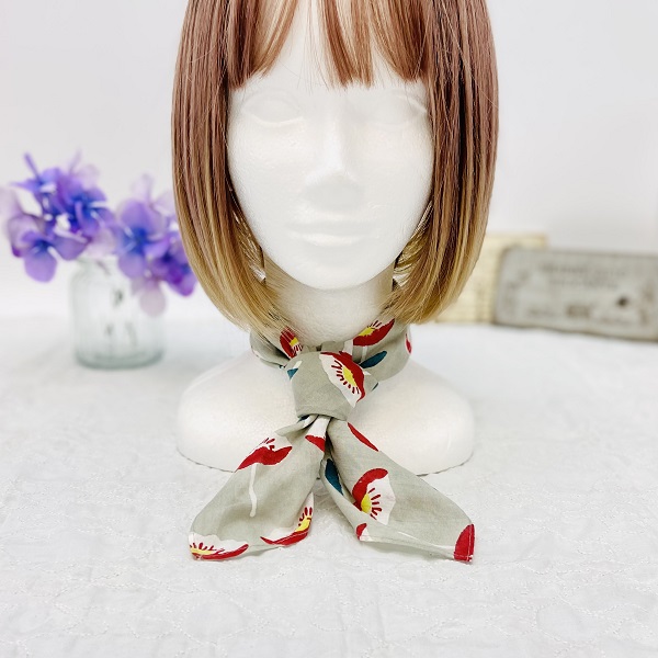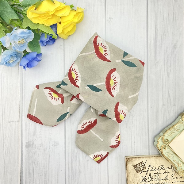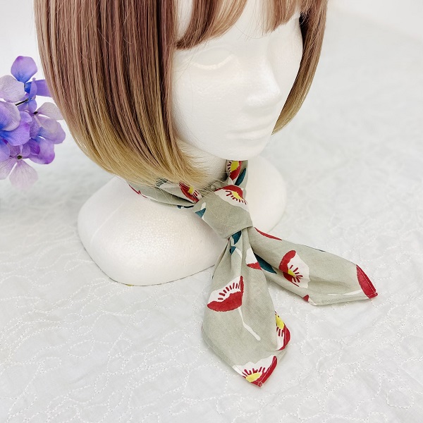 バンダナ インド綿100% 風に揺れながら咲くアネモネ グレー 約55cm×55cm kb071