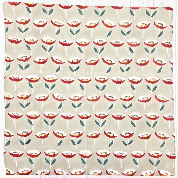 冬に色鮮やかに花開くアネモネをモチーフにしたブロックプリントハンカチ。ギリシャ語で「風」を意味するアネモスを由来に持ち、イギリスでは「wind flower」と呼ばれるこの花が、風に揺れながら咲く美しい姿をデザインに落とし込みました。「希望」や「期待」といった花言葉を持つアネモネは、贈り物としても最適。