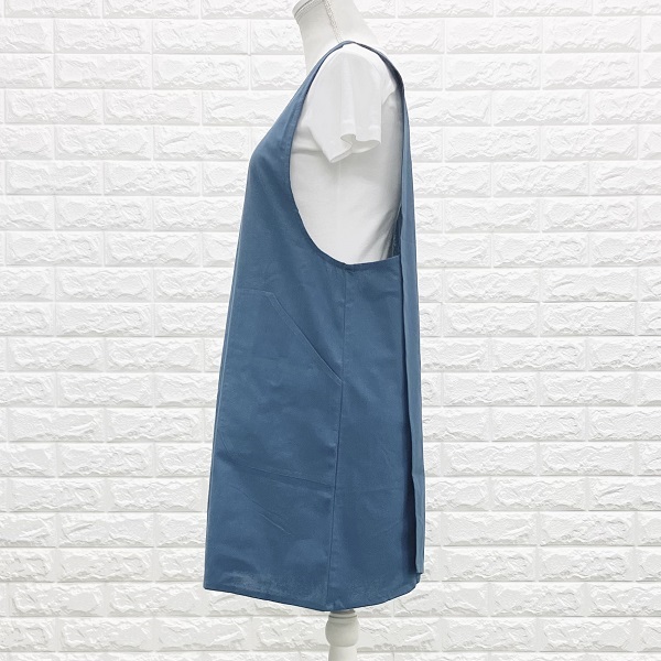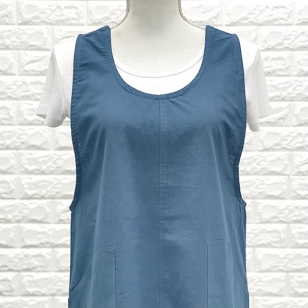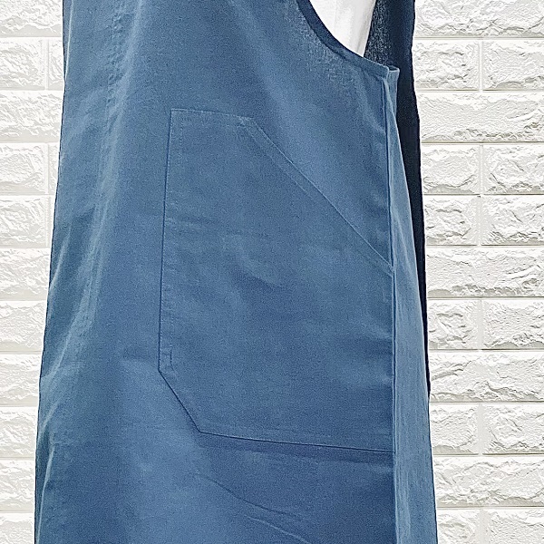 エプロン インド綿100% シンプル ブルー 定番人気 北欧 カントリー 使いやすい フリーサイズ ke009